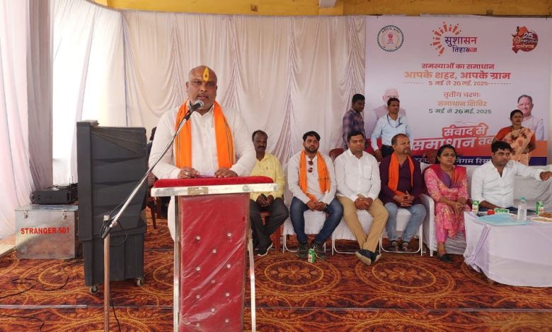 आगे अधिकारी कर्मचारी को निर्देश देते हुए कहा कि समाधान शिविर में प्राप्त आवेदनों का तत्काल निराकरण करे अपना व्यवहार नम्र रखें जब जनता आपके बीच किसी काम को लेकर जाते है तो शालीनता पूर्ण व्यवहार करे ।ये जनता की सरकार है जनता के द्वारा किए गए वादे के अनुरूप सरकार जनता बीच पहुंचकर समस्याओं का निराकरण कर रही है आप सभी इस कार्य को प्राथमिकता से ले और तयबध्य समय सीमा में निराकरण करे।