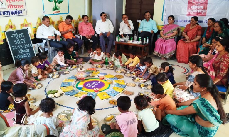 परियोजना अधिकारी श्रीमती उषा झा ने बताया कि सभी आंगनबाड़ी केंद्रों में सामुदायिक सहयोग से किसी विशेष दिवस के उपलक्ष्य में न्योता भोज का आयोजन किया जाता है। इसी कड़ी में उतई 1 में पार्षद संगीत रजक के द्वारा अपने जन्मदिन पर उमरपोटी 4 में भामिनी सोनवानी द्वारा शादी के सालगिरह तथा उतई 5 में अपने बच्चे के जन्मदिन के अवसर पर मनीषा देवांगन द्वारा न्यौता भोज का आयोजन किया गया। जिसमें बच्चों को अंगूर,केला आम,खरबूजा, पौष्टिक दलिया उपमा,हलवा,खीर पूड़ी का वितरण किया गया। आंगनवाड़ी में जनपद पंचायत सदस्य श्रीमती झमित गायकवाढ़, सरपंच विजेंद्र साहू, पार्षद अनीता गढ़े, भीमसेन सिन्हा, विजयलक्ष्मी साहू, खूबी साहू, लता सोनवानी,सेक्टर पर्यवेक्षक श्रीमती प्रमिला वर्मा उपस्थित रहे। अन्य सम्मानित गण ममताचन्द्राकर ,गैदलाल साहू, कतलम,अश्वनीकुमार, नीरा ठाकुर,हीना मरकाम, संतोषी, जानकी,लक्ष्मी,शकुन देवागन, नेहा,ममता ढीमर,सरिता साहू, प्रेमकुमारी,सीमू साहू ,फुलेश्वरी देवांगन माद्री ठाकुर महेश्वरी सोनवानी नीलम गीता दुलेश्वरी उपस्थित रहे।