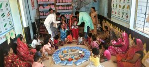 इस दौरान कार्यक्रम में स्थानीय पौष्टिक आहार, स्वच्छता, गर्भवती महिलाओं की देखभाल तथा बच्चों के नियमित स्वास्थ्य परीक्षण के महत्व पर विस्तार से चर्चा की गई। आंगनबाड़ी कार्यकर्ताओं एवं सहायिकाओं द्वारा पोषण संबंधी जानकारी साझा की गई।