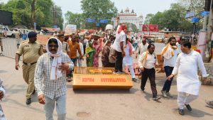 मनरेगा में मजदूरों के रोजगार के लिए दुर्ग जिले में जंगी प्रदर्शन झउआ,धमेला,रापा मजदूरी सामग्री लेकर रोजगार मांगने पहुंचे ग्रामीण